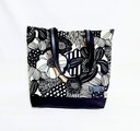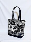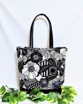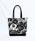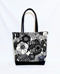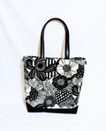 北欧風ナチュラル生成り地にモノトーンの大きな花柄、綿100%薄手10番キャンパス生地にバック用接着芯を貼っています。