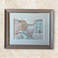 額のサイズは縦横28.3×34.3センチ、マットの内枠(絵の見える部分)は縦横15×22センチです。