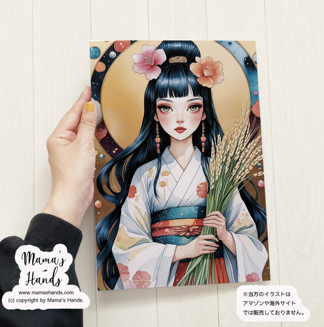 《豊受大神と稲穂》☘️A4 ポスター 神秘的な トヨウケノオオカミ 日本神話 イラスト アート