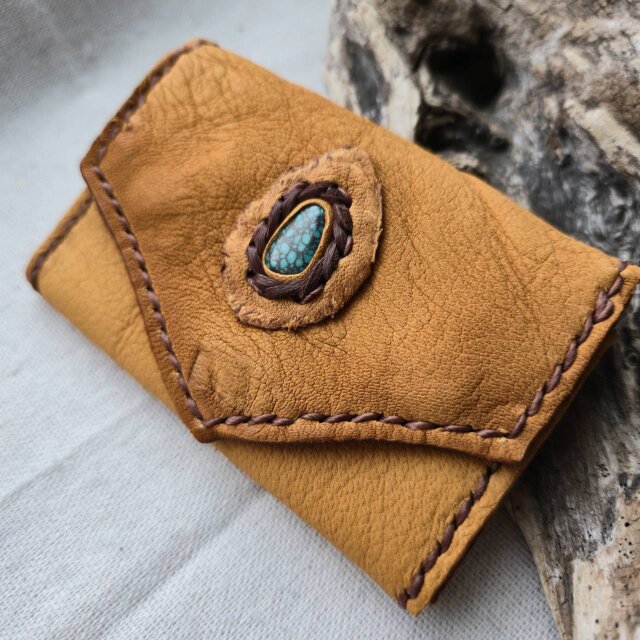 柔らかく肌触りのいい鹿革を使用し、手縫いによるハンドメイドで仕上げました。