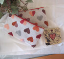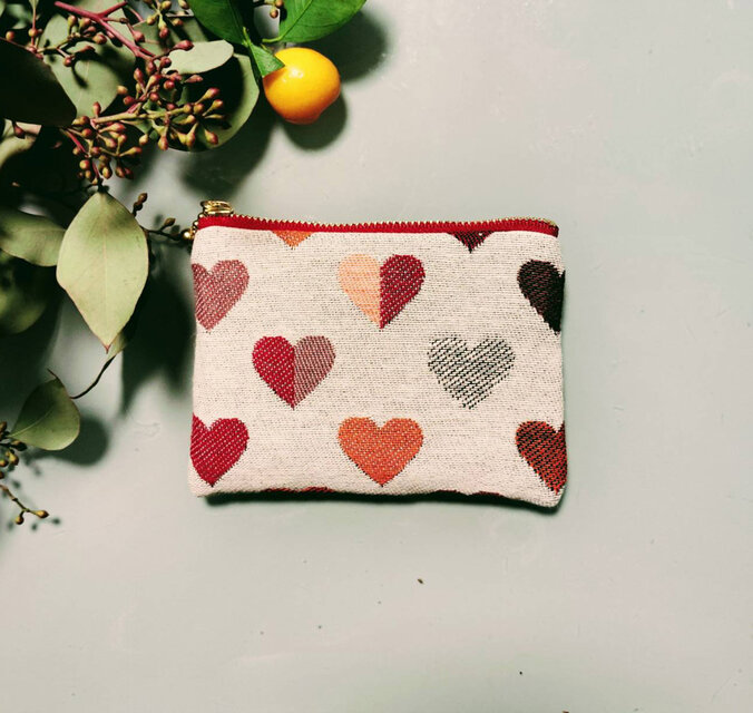 フランス生地 ハートがいっぱいのポーチ(S)バレンタイン コスメ入れ 鍵入れ カード入れ 薬入れ