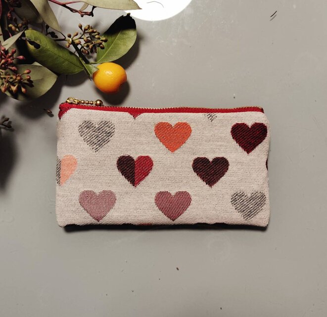 フランス生地 ハートがいっぱいのポーチ(MS)バレンタイン コスメ入れ 鍵入れ カード入れ 薬入れ