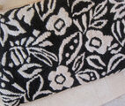 ブラックの地にホワイトの花が生き生きと命をみせつけるように咲き誇っています。