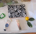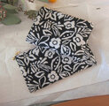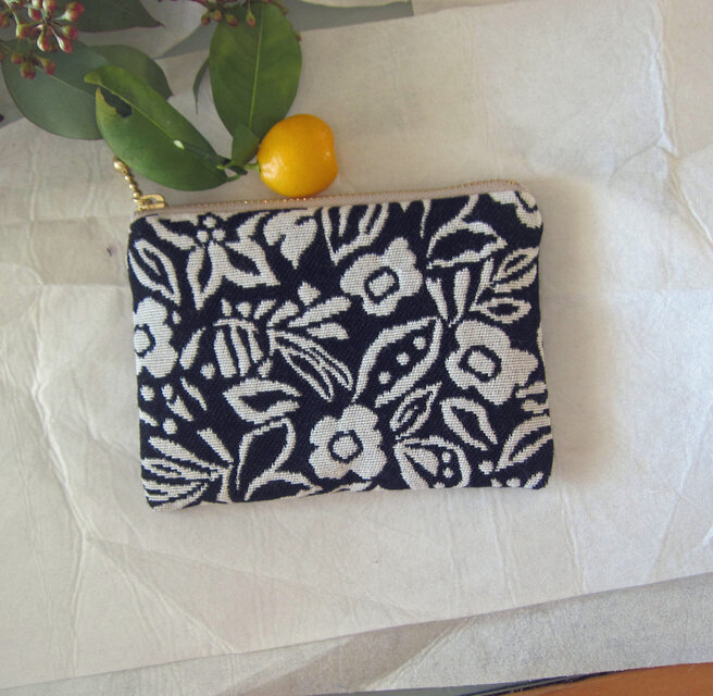 フランス生地 黒地に咲く白い花(S) コスメ入れ 鍵入れ カード入れ 薬入れ