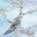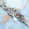 アンティークシルバーの翼と歯車を組合せたスチームパンク風ネックレスです