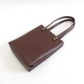 SALE開始~ 《牛革》長めのハンドル♪ぷっくり三角マチ♪BOXミニトート・シュリンク・ダークブラウン・0534