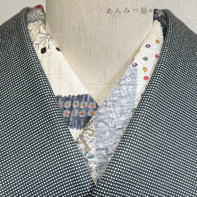 現代風のデザインの半衿をごく地味な衿の襦袢に溜めるだけで、少し奇抜な配色の着流しの印象を引き締めてくれました。 年末の注文でしたがすぐ送っていただけたので、新年会で着ていく時に活用できました。ありがとうございます。