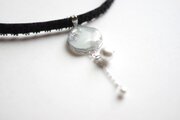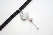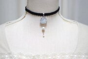銀箔と淡水パールを沈めたスライスアゲートのようなレジンを、ベルベットリボンにタティングレースで装飾を施したチョーカーに仕上げました。