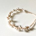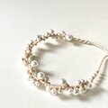 3サイズの小粒ミルキーパールとビーズを可憐に編み込んだマクラメブレスレットです。端にはアクセントに大粒天然石を付けました✩.*˚