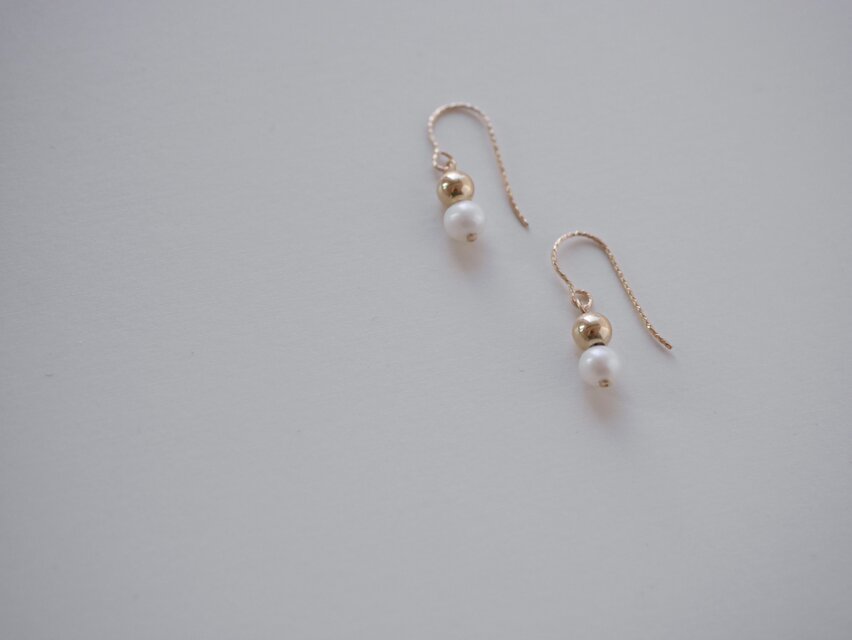 月と太陽 | 淡水パールとゴールドビーズの14kgfフックピアス