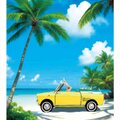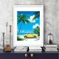 イエローボディのオープンカーにしました 海辺のコラージュポップアートポスター。