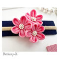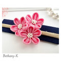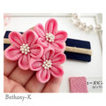 お宮参りやお食い初めに◆小花が可愛い和モダン髪飾りミニ(下がりなし)◆ローズピンク色の自分でもママでも簡単につけられるつまみ細工