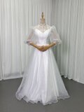 パーティードレス ヘップバーン風 クラシカル ロングドレス パフスリーブ 前撮り くるみボタン