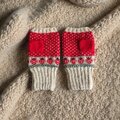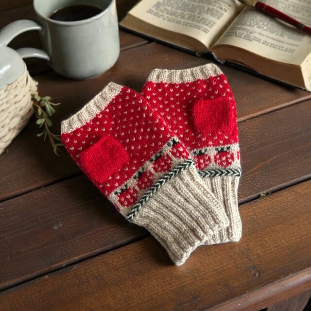 シェットランドウールを使用しいちご柄を編み込んだアームウォーマーです。