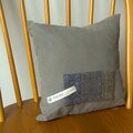 【羊毛を手紡ぎした糸を使って織った布を使ったクッションです】