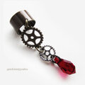 アンティークゴールドとシルバーの色と形が違う歯車と雫型グラスビーズのアンティーク調イヤーカフです