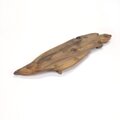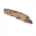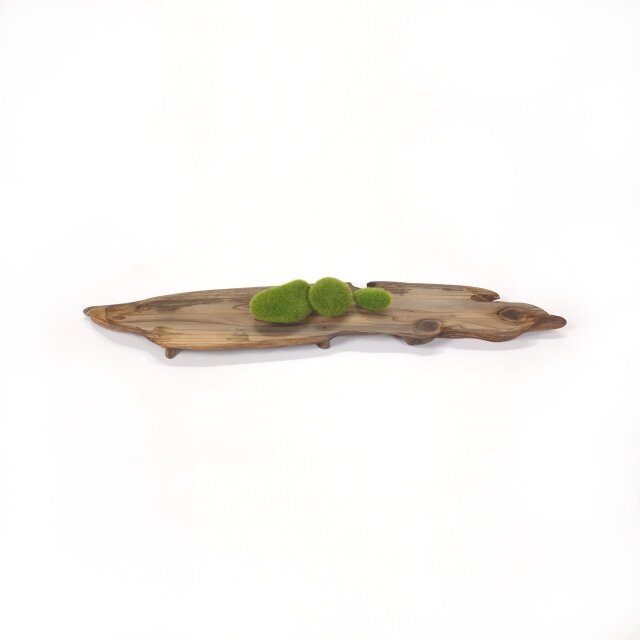流木の厚みは 2.5cmほど、裏面片方の 長辺の端に長い削れがあり、台座安定のため、短い枝流木の足を2つ取り付けております。