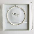 ※商品内容…貝パールネックレス/8mm約42cm/x1点、貝パールイヤリング又は・貝パールピアス/8mm/ホワイトピンクのどちらか1点、1粒チェーンネックレスの計3点セット。更に専用ボックス付き。