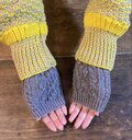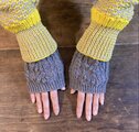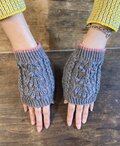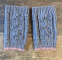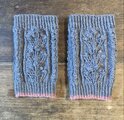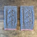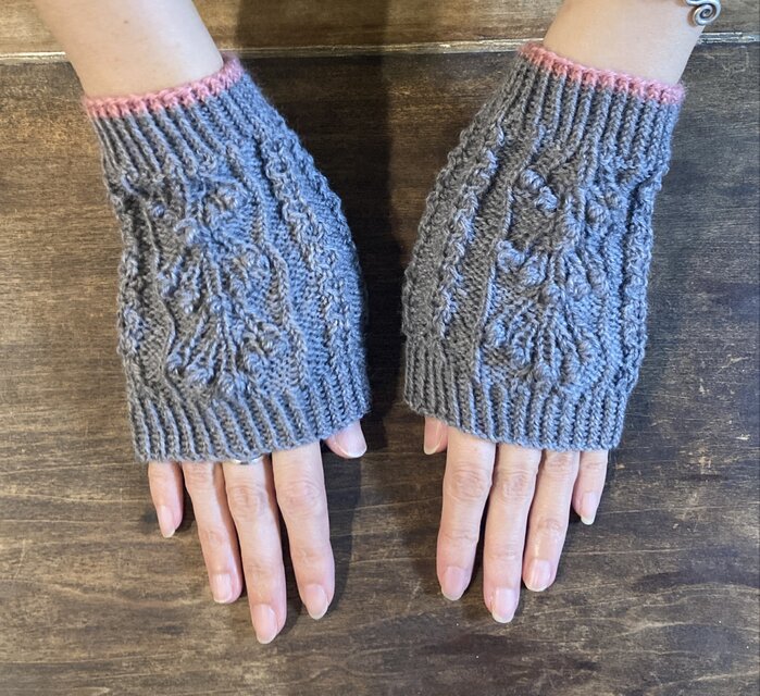 ハンドウォーマー*ピンク&グレー*英国ウール100%*ニット*孔雀の頭*ミトン*手袋*リストウォーマー*民族衣装や古着好きさんに