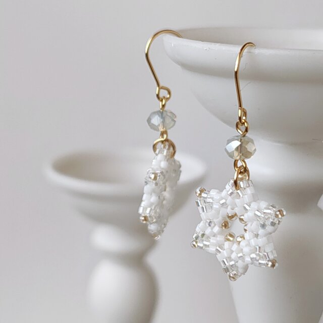 真っ白なダイアモンドダストをイメージしたピアスです。