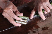 ミャンマーのインレー湖で取った蓮糸です。