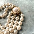 ゴールドトーンを縁取りにした半円パールの留め具が、クラシックな雰囲気を作り出します。