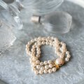 パールの留め具がアクセントとなる、3連パールブレスレット。