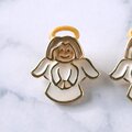エナメルで色付けされたエンジェルの着けると耳から飛び出すようにデザインされたヴィンテージピアスです。
