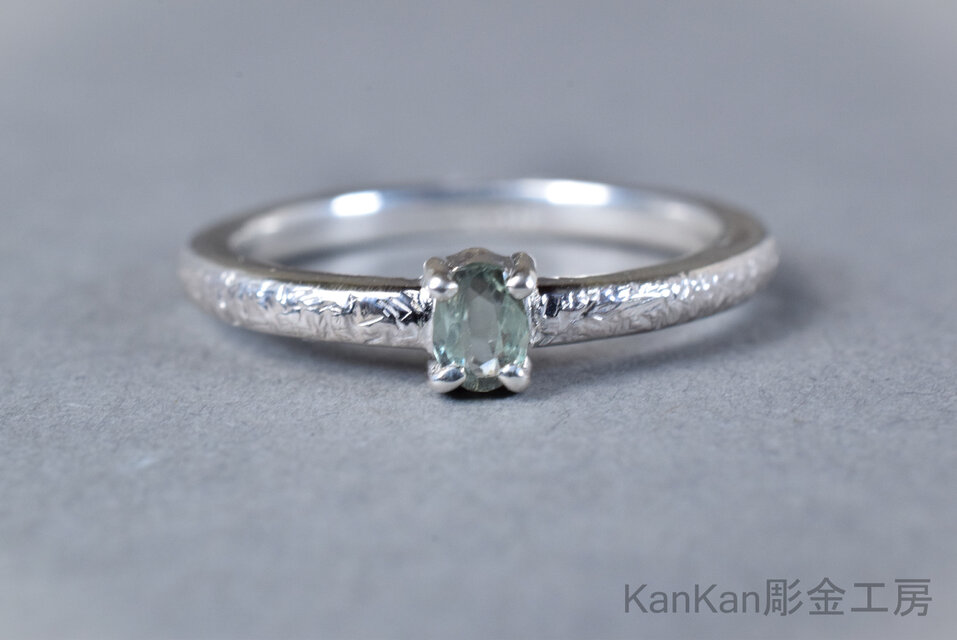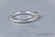 全周に荒らしを施したリングに仕立て、細身で重ね付けもしやすいタイプです。