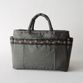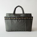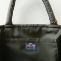 バッグのベースにはモスグリーンの撥水性ナイロン生地を使用して、