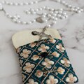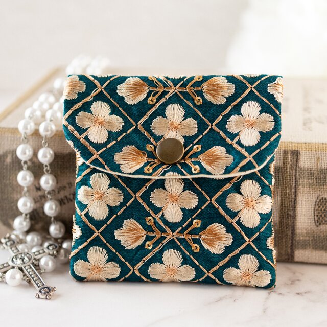 ロザリオケース【インド刺繍生地/グリーンクローバー】ジュエリーポーチ