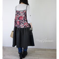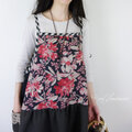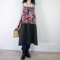 [予約販売]リネンブラックレッドフラワーキャミワンピース