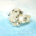 艶やかなフラッシュ加工を施した天然石ホワイトカルセドニーを主役にした、存在感のあるリングです。
