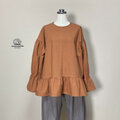 ★アンダーフリルのキャンディブラウス【やわらかコットンリネン】スモーキーオレンジ◆フリーサイズ