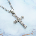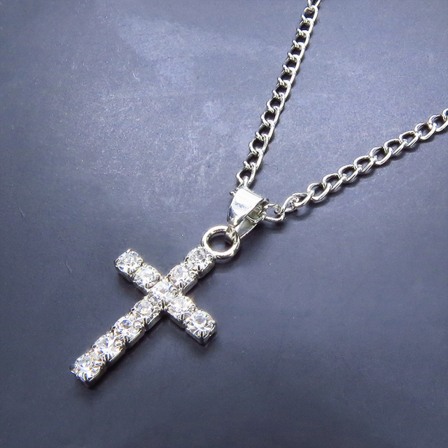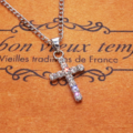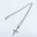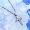 ステンレス シルバーカラー ラインストーンを使ったロザリオのコンパクトなネックレス ワンポイント 長さ変更可