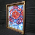 この油絵のサイズは縦305mm × 横254mmで、ライトゴールド色とアイアンブラウン色の額縁は縦36.0cm × 横30.8cm × 厚さ2.6cm です。壁掛け用の金具も付属していますので、お好きな場所に簡単に飾ることができます。「梅雨の赤い紫陽花の雨」は、大切な方への贈り物や特別な瞬間を彩るアートとして、自信を持ってお勧めいたします。