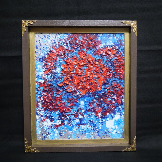 【作品名】:油絵【梅雨の赤い紫陽花の雨】