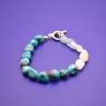 ターコイズ(トルコ石)、ムーンストーン、アクアマリン、3種類の天然石をつないだブレスレットです♪