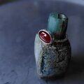 ヘソナイトガーネットをシンプルなシルバーリングに仕立てました。