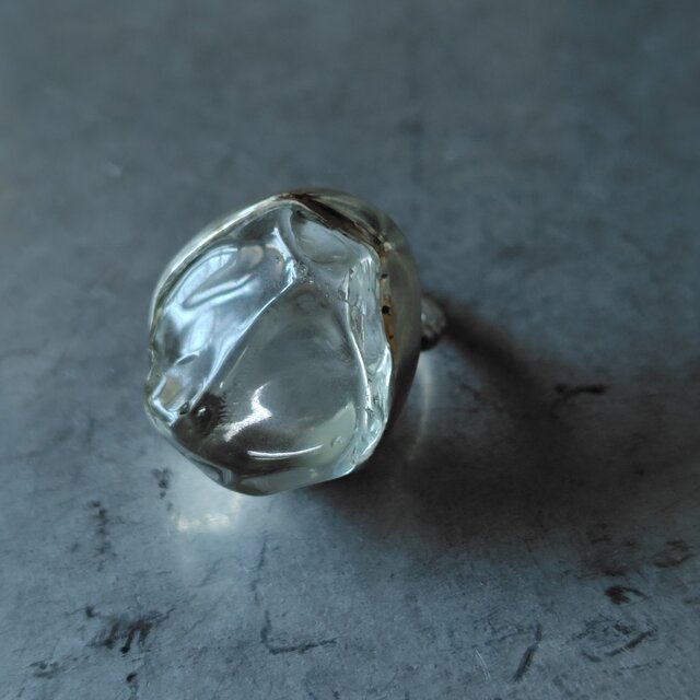 透明感の美しいナチュラルな曲線を描く非加熱のグリーンアメジストをラフな石枠で包みシルバーリングに仕立てました。