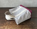 ⚫︎洗濯可能ですが、薄めた中性洗剤で優しく手洗いでお願いします。強くこするとそこだけ色落ちする場合がございますのでご注意ください。お洗濯後は洗濯機で脱水(ネットに入れ)又は軽く絞り、形を整えて陰干しでお願い致します。乾燥機のご使用はお避けください。極端な色落ちはしませんが、濃い色のものは若干色落ちする場合がありますので単品洗いでお願いします。アイロンをかける際は、直接かけずに必ず当て布をしてください。お使いになり、また洗いを繰り返しながら色合いが変化しますので、その風合いを楽しみながらお使い頂けたらと思います。