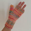 出来上がってみると、寒くてもどこか出かけたくなるようなハーフミトンになりました。