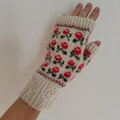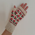 Chorus(コーラス):蕾模様のカフスと赤い花のハーフミトン