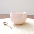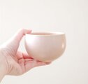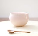 ころんと丸いお湯のみの形に成形後、柔らかな桜色が美しい桜花窯変釉をかけて焼き上げました。