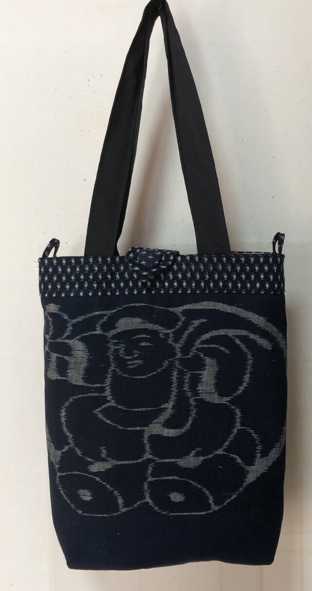 中袋には、綿地のの羽織の裏地を使い、中ポケットを一つ付けています。