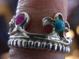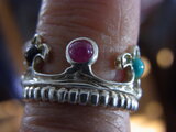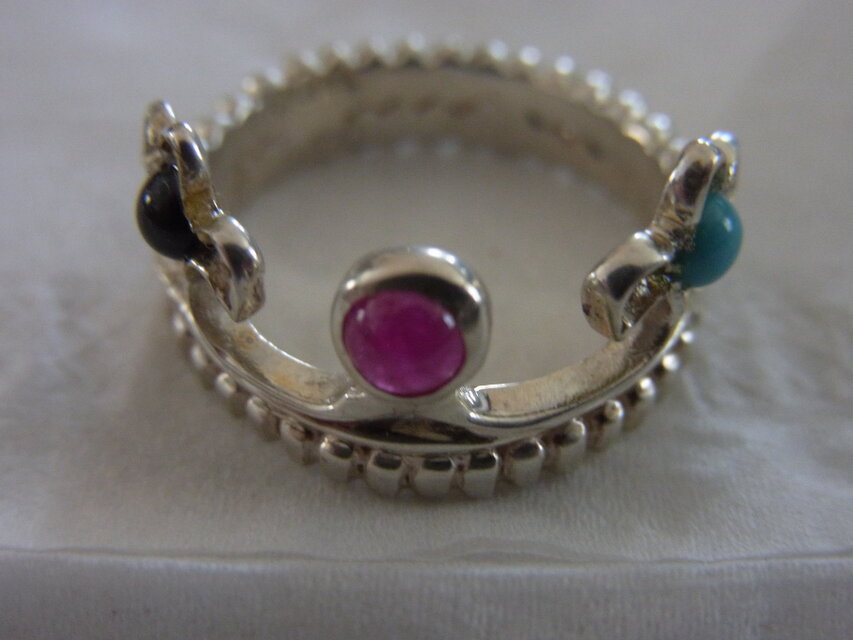 真ん中がカボッションルビーで脇がトルコ石とオニキスの黒い石です。