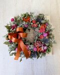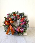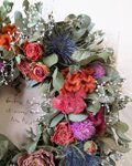 ドライフラワーを使い、シックで落ち着いた雰囲気のリースをアレンジしました。