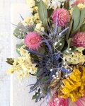 花材:ユーカリ、ヒマワリ、千日紅、エリンジューム、HBスターチス