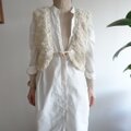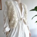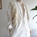 空気をまとうような、立体感のある手編みのウールベスト。オフホワイトのスラブヤーンがつくる、やわらかな陰影。