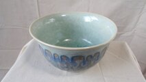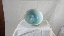 内面はごく薄い緑釉、外側口辺より下の部分に